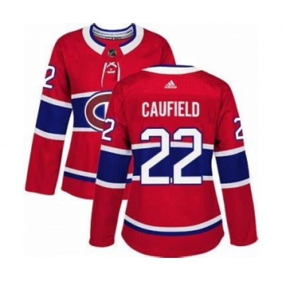 >Adidas Montreal Canadiens #22 Cole Caufield Red Home Authentic Women's Stitched NHL Jersey