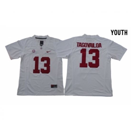>Alabama Crimson Tide 13 Tua Tagovailoa White Youth With Diamond Logo College Football Jersey