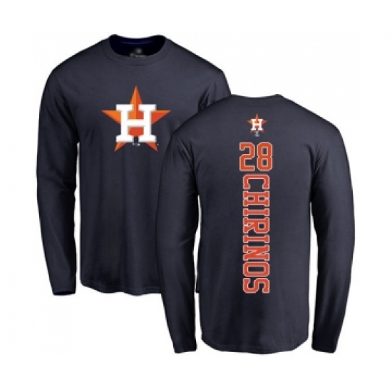 >Baseball Houston Astros #28 Robinson Chirinos Navy Blue Backer Long Sleeve T-Shirt