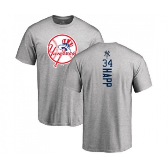 >Baseball New York Yankees #34 J.A. Happ Ash Backer T-Shirt