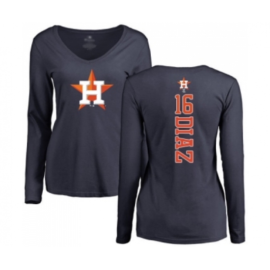 >Baseball Women's Houston Astros #16 Aledmys Diaz Navy Blue Backer Long Sleeve T-Shirt