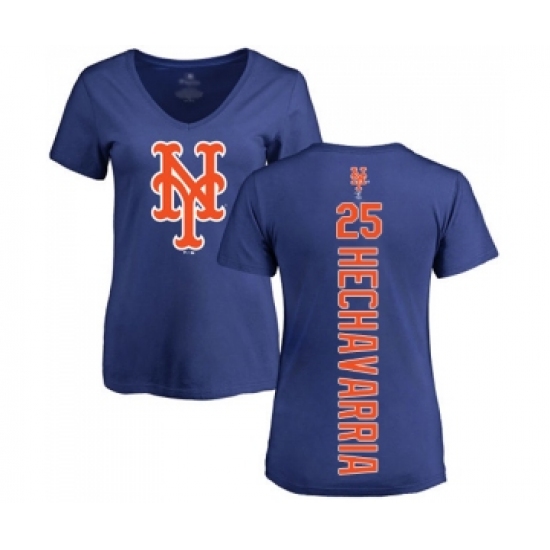 >Baseball Women's New York Mets #25 Adeiny Hechavarria Royal Blue Backer T-Shirt