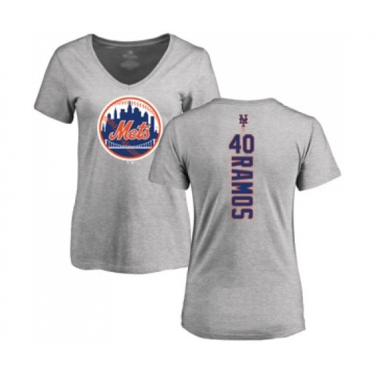 >Baseball Women's New York Mets #40 Wilson Ramos Ash Backer T-Shirt