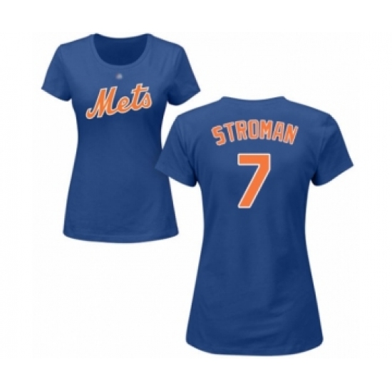 >Baseball Women's New York Mets #7 Marcus Stroman Royal Blue Name & Number T-Shirt