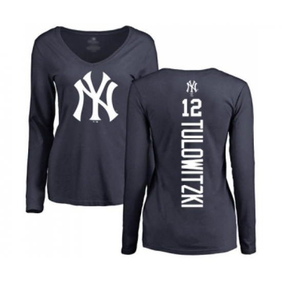 >Baseball Women's New York Yankees #12 Troy Tulowitzki Navy Blue Backer Long Sleeve T-Shirt