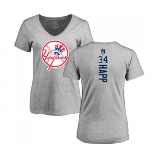 >Baseball Women's New York Yankees #34 J.A. Happ Ash Backer T-Shirt
