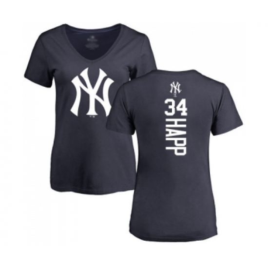 Baseball Women's New York Yankees #34 J.A. Happ Navy Blue Backer T-Shirt