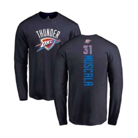 >Basketball Oklahoma City Thunder #31 Mike Muscala Navy Blue Backer Long Sleeve T-Shirt