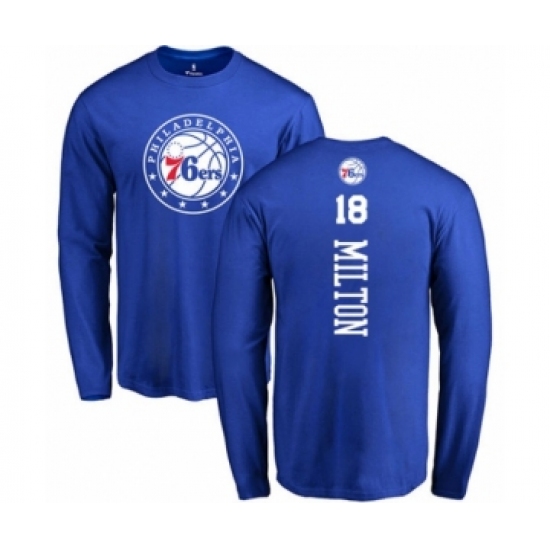 >Basketball Philadelphia 76ers #18 Shake Milton Royal Blue Backer Long Sleeve T-Shirt