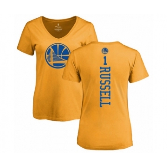 >Basketball Women's Golden State Warriors #1 D'Angelo Russell Gold One Color Backer Slim-Fit V-Neck T-Shirt