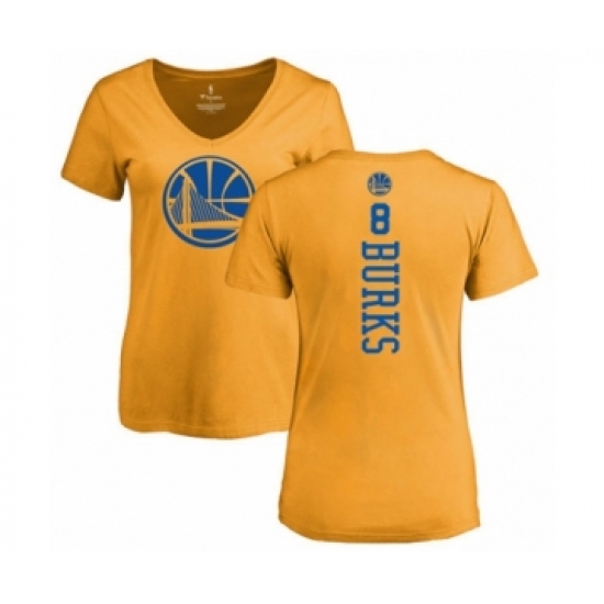 >Basketball Women's Golden State Warriors #8 Alec Burks Gold One Color Backer Slim-Fit V-Neck T-Shirt