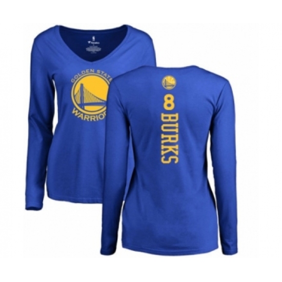 >Basketball Women's Golden State Warriors #8 Alec Burks Royal Blue Backer Long Sleeve T-Shirt