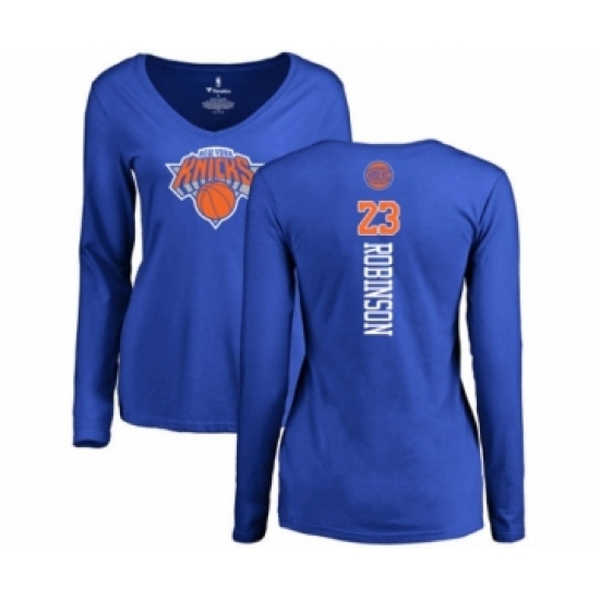 >Basketball Women's New York Knicks #23 Mitchell Robinson Royal Blue Backer Long Sleeve T-Shirt