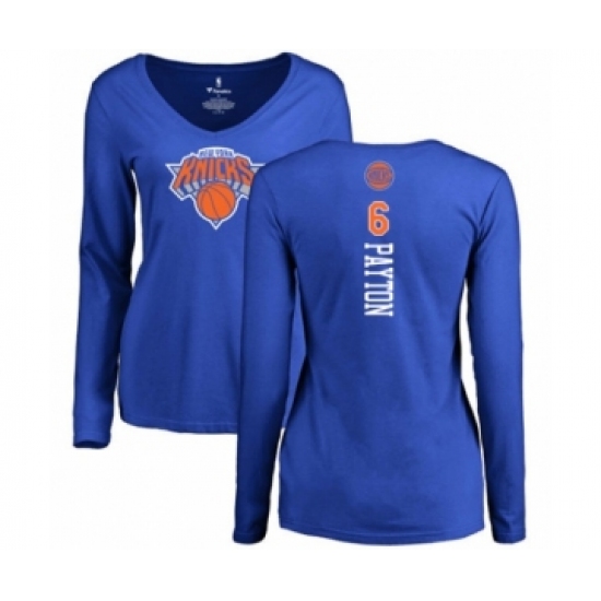 >Basketball Women's New York Knicks #6 Elfrid Payton Royal Blue Backer Long Sleeve T-Shirt