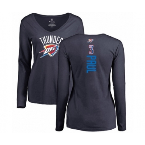 >Basketball Women's Oklahoma City Thunder #3 Chris Paul Navy Blue Backer Long Sleeve T-Shirt
