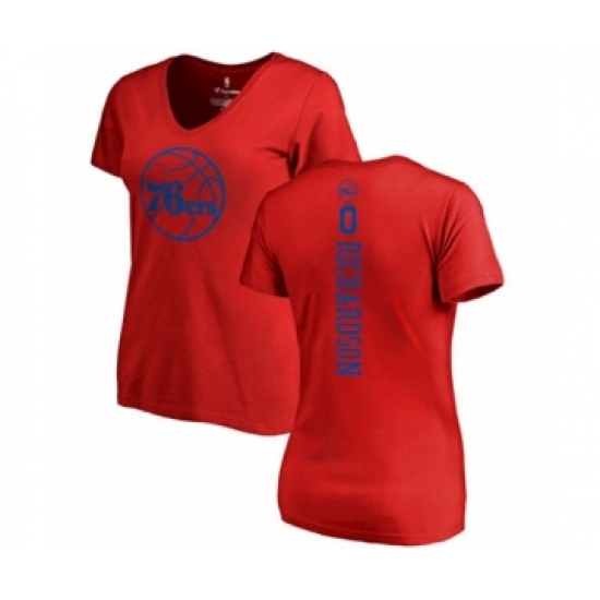 >Basketball Women's Philadelphia 76ers #0 Josh Richardson Red One Color Backer Slim-Fit V-Neck T-Shirt
