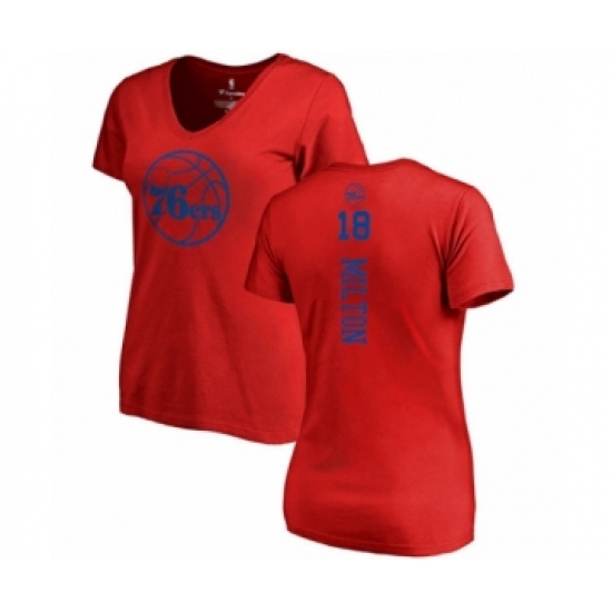>Basketball Women's Philadelphia 76ers #18 Shake Milton Red One Color Backer Slim-Fit V-Neck T-Shirt
