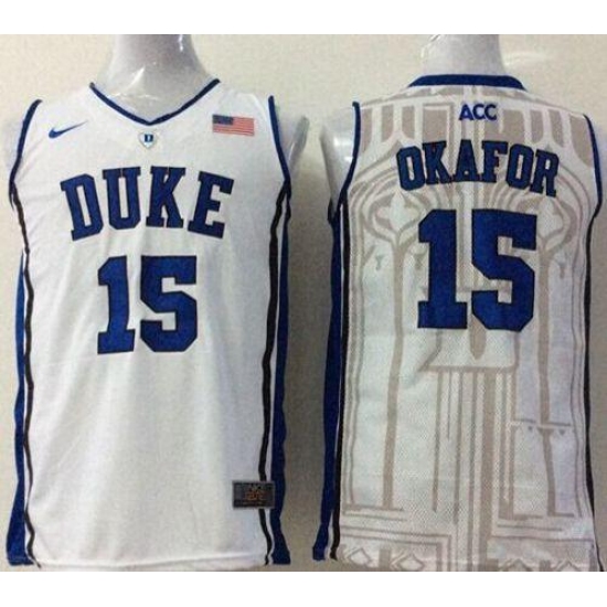 >Blue Devils #15 Jahlil Okafor White Basketball Stitched NCAA Jersey