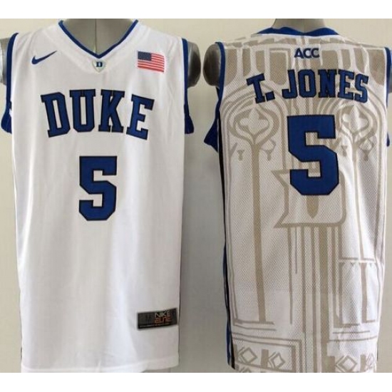 Blue Devils #5 Tyus Jones White Basketball Stitched NCAA Jersey