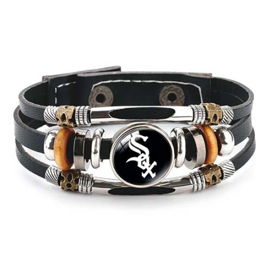 >Chicago white socks MLB Pro football team jewel cowhide bracelet leather hand jewelry