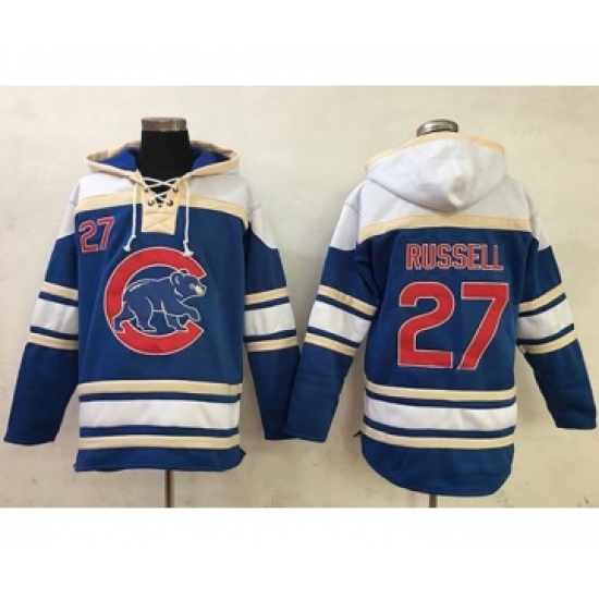 >Cubs #27 Addison Russell Blue Sawyer Hooded Sweatshirt MLB Hoodie
