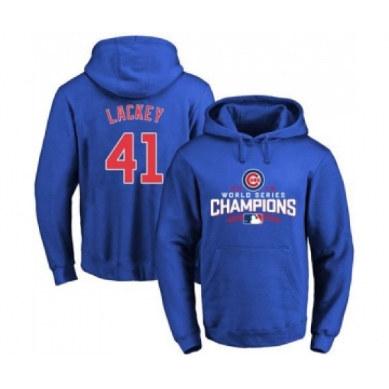 >Cubs #41 John Lackey Blue 2016 World Series Champions Pullover MLB Hoodie