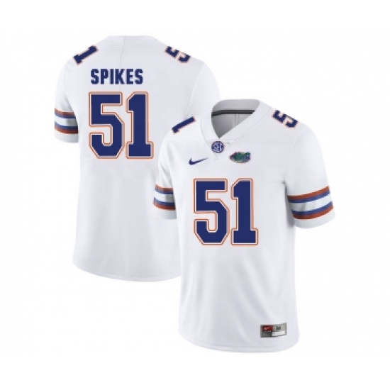 >Florida Gators 51 Brandon Spikes White College Football Jersey