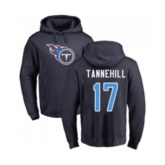 >Football Tennessee Titans #17 Ryan Tannehill Navy Blue Name & Number Logo Pullover Hoodie