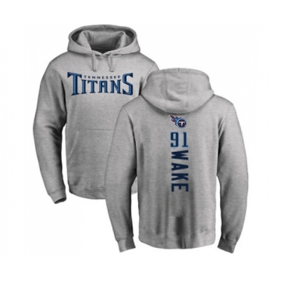 >Football Tennessee Titans #91 Cameron Wake Ash Backer Pullover Hoodie