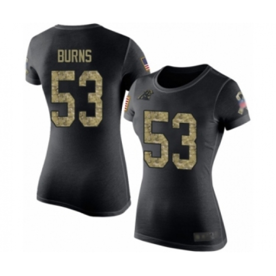 Football Women's Carolina Panthers #53 Brian Burns Black Camo Salute to Service T-Shirt