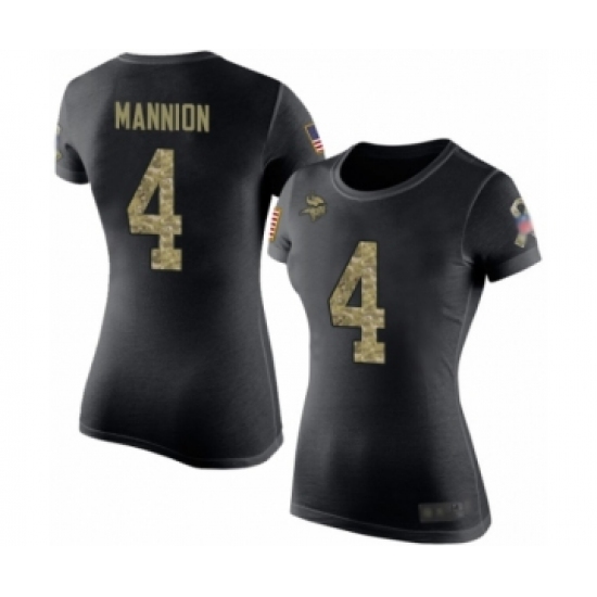 >Football Women's Minnesota Vikings #4 Sean Mannion Black Camo Salute to Service T-Shirt