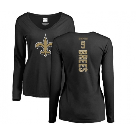 Football Women's New Orleans Saints #9 Drew Brees Black Backer Slim Fit Long Sleeve T-Shirt