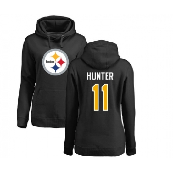 Football Women's Pittsburgh Steelers #11 Justin Hunter Black Name & Number Logo Pullover Hoodie