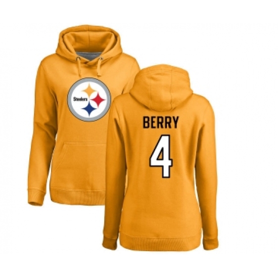 >Football Women's Pittsburgh Steelers #4 Jordan Berry Gold Name & Number Logo Pullover Hoodie