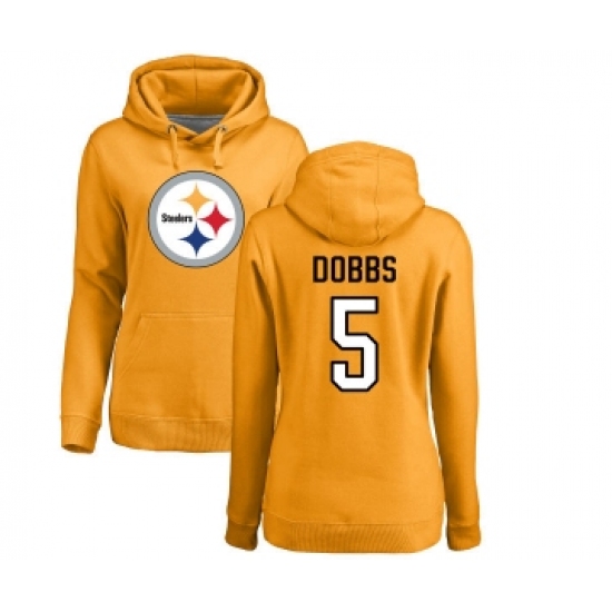 Football Women's Pittsburgh Steelers #5 Joshua Dobbs Gold Name & Number Logo Pullover Hoodie