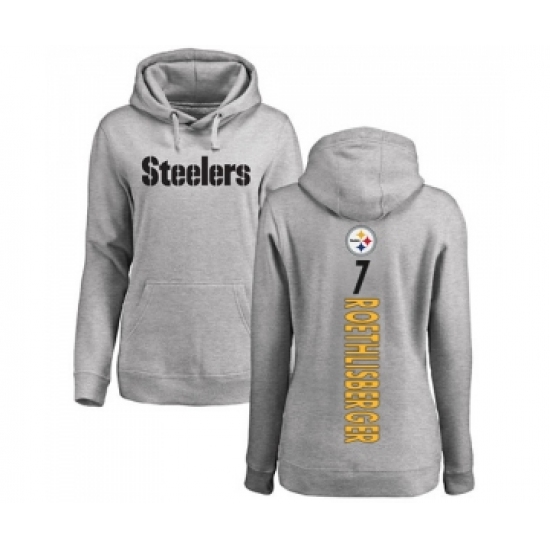 Football Women's Pittsburgh Steelers #7 Ben Roethlisberger Ash Backer Pullover Hoodie