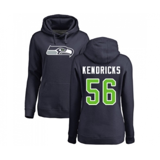 Football Women's Seattle Seahawks #56 Mychal Kendricks Navy Blue Name & Number Logo Pullover Hoodie