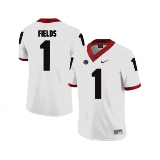 >Georgia Bulldogs 1 Justin Fields White College Football Jersey