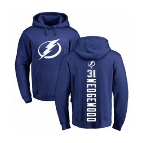 Hockey Tampa Bay Lightning #31 Scott Wedgewood Royal Blue Backer Pullover Hoodie