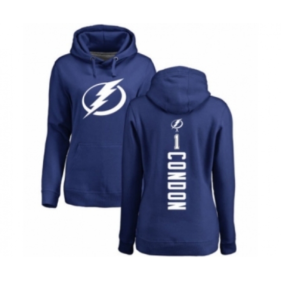 Hockey Women's Tampa Bay Lightning #1 Mike Condon Royal Blue Backer Pullover Hoodie