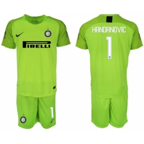 >Inter Milan #1 Handanovic Shiny Green Goalkeeper Soccer Club Jersey