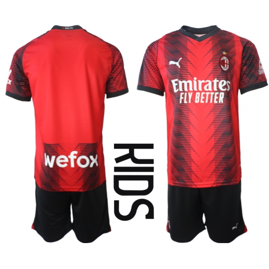 >Kids AC Milan Blank 2023-24 Red Black Home Soccer Jersey