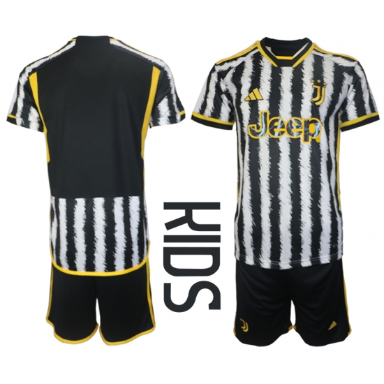 >Kids Juventus FC Blank Black Stripe 2023-24 Home Soccer Jersey