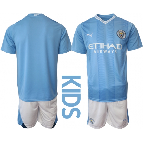 Kids Manchester City Blank 2023-24 Blue Home Soccer Jersey
