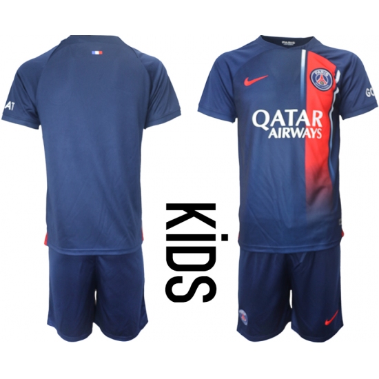 >Kids Paris St Germain Blank Navy 2023-24 Home Soccer Jersey
