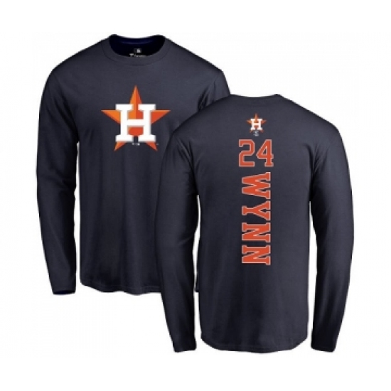 >MLB Nike Houston Astros #24 Jimmy Wynn Navy Blue Backer Long Sleeve T-Shirt