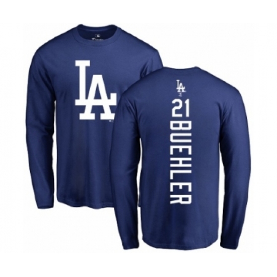 MLB Nike Los Angeles Dodgers #21 Walker Buehler Royal Blue Backer Long Sleeve T-Shirt