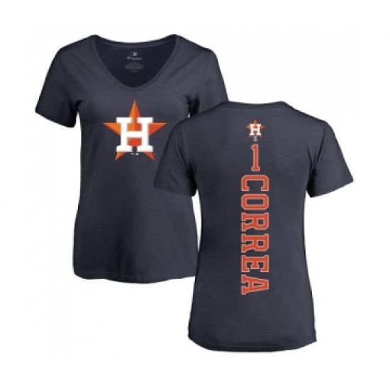 >MLB Women's Nike Houston Astros #1 Carlos Correa Navy Blue Backer T-Shirt
