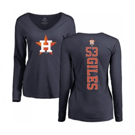 MLB Women's Nike Houston Astros #53 Ken Giles Navy Blue Backer Long Sleeve T-Shirt