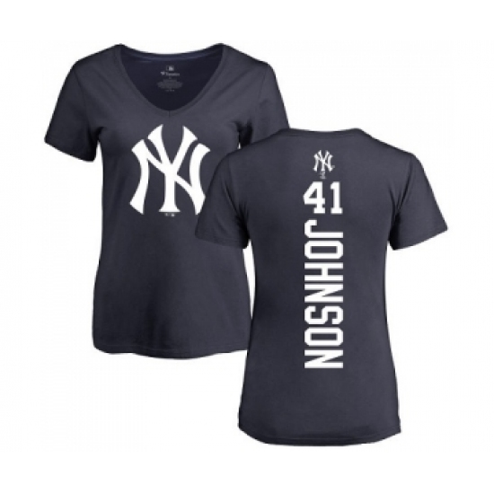 MLB Women's Nike New York Yankees #41 Randy Johnson Navy Blue Backer T-Shirt